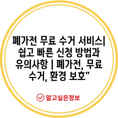 폐가전 무료 수거 서비스| 쉽고 빠른 신청 방법과 유의사항 | 폐가전, 무료 수거, 환경 보호”